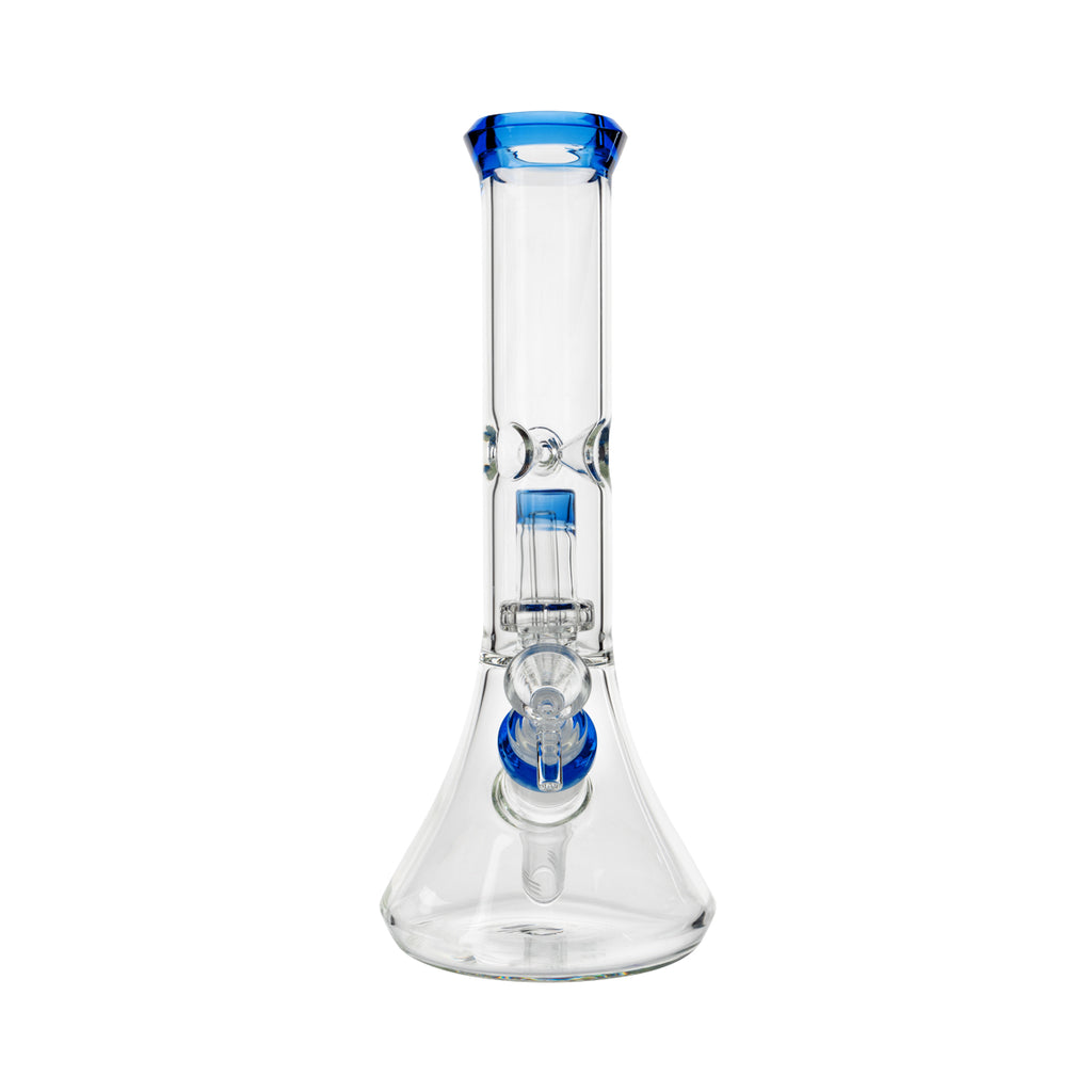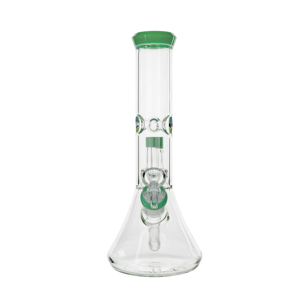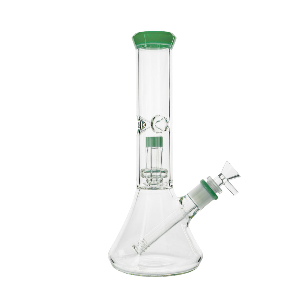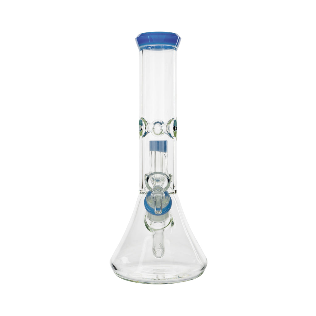 This beaker-style glass bong features a built-in showerhead percolator that diffuses smoke through multiple slits, breaking it up into tiny bubbles for cooler, cleaner draws. Translation? Smoother rips and less harshness.