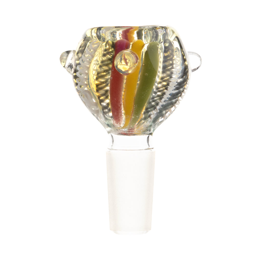 Bring some vibrant island vibes to your smoking setup with the 14mm Rasta Stripe White Lattacino Bowl! This isn't just any glass bowl—it's a hand-blown masterpiece crafted from premium borosilicate glass that's built to last through countless sessions.