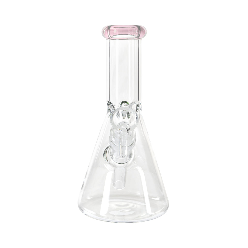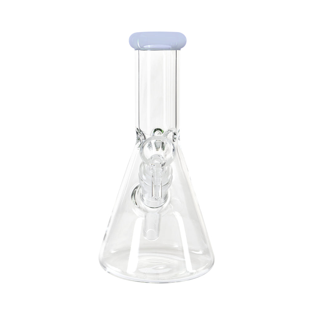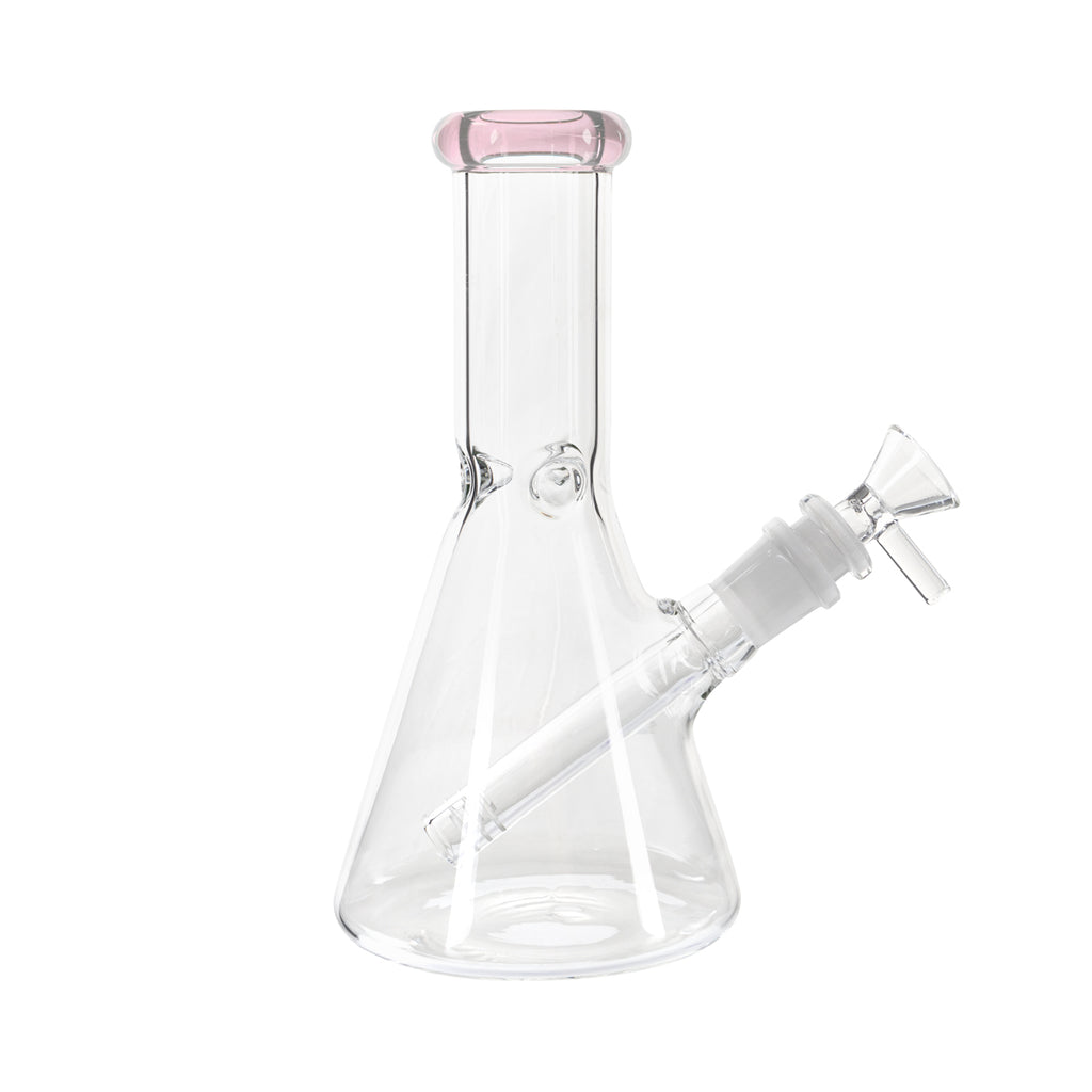 This water bong features a robust beaker base that boosts stability to help prevent tipping and extend its durability. Its 14mm glass bowl accommodates generous amounts of your favorite herb, and the integrated 3-pinch ice catcher cools your draws for a smoother experience. Topped with a vibrant colored lip detail, it adds a splash of style to any setting.