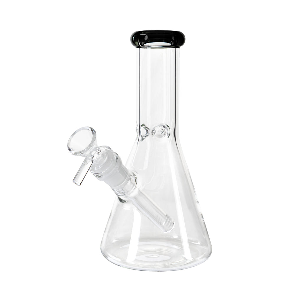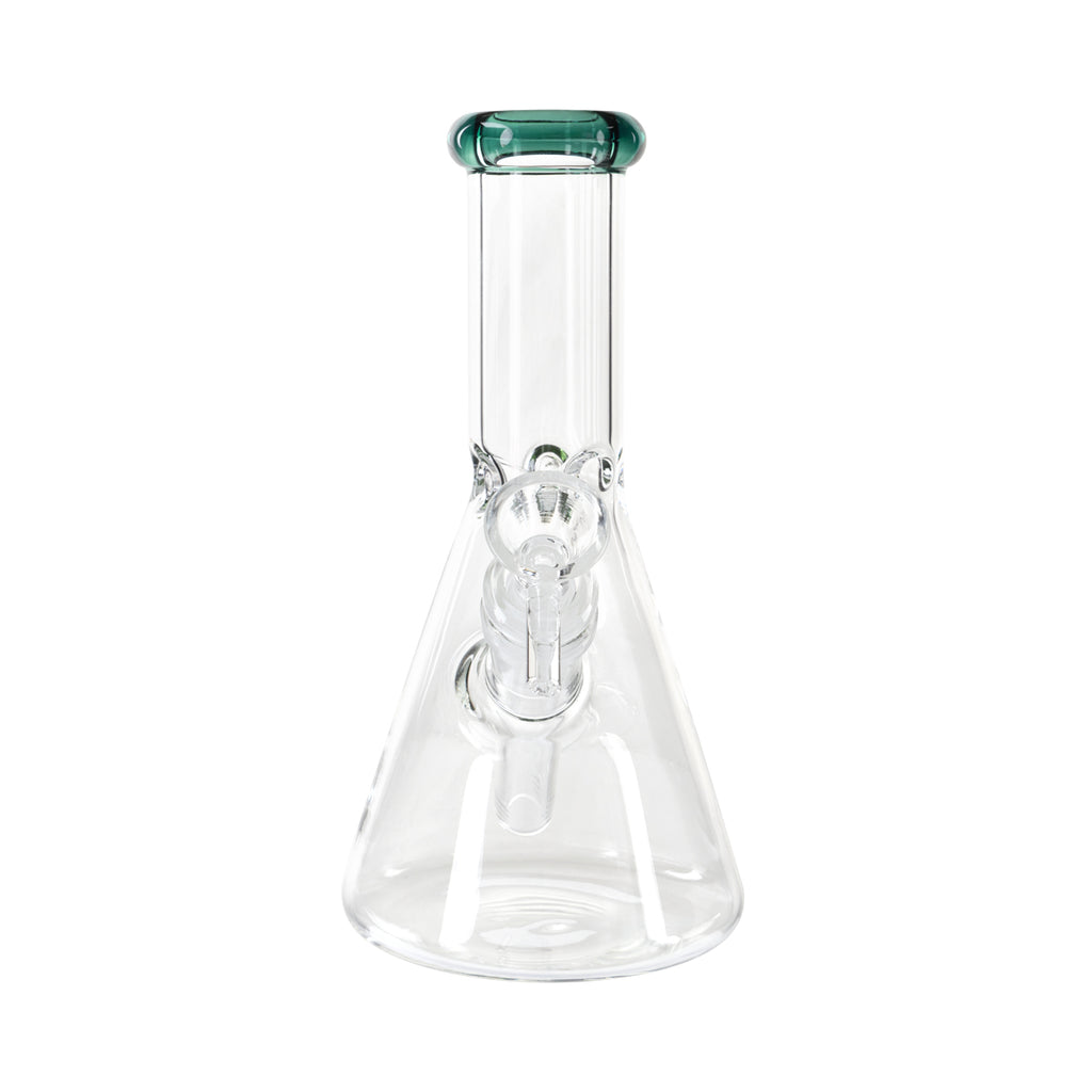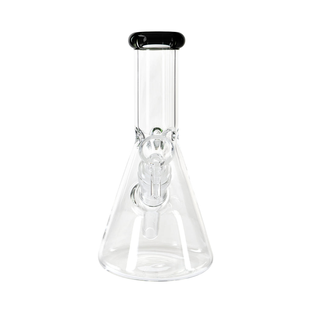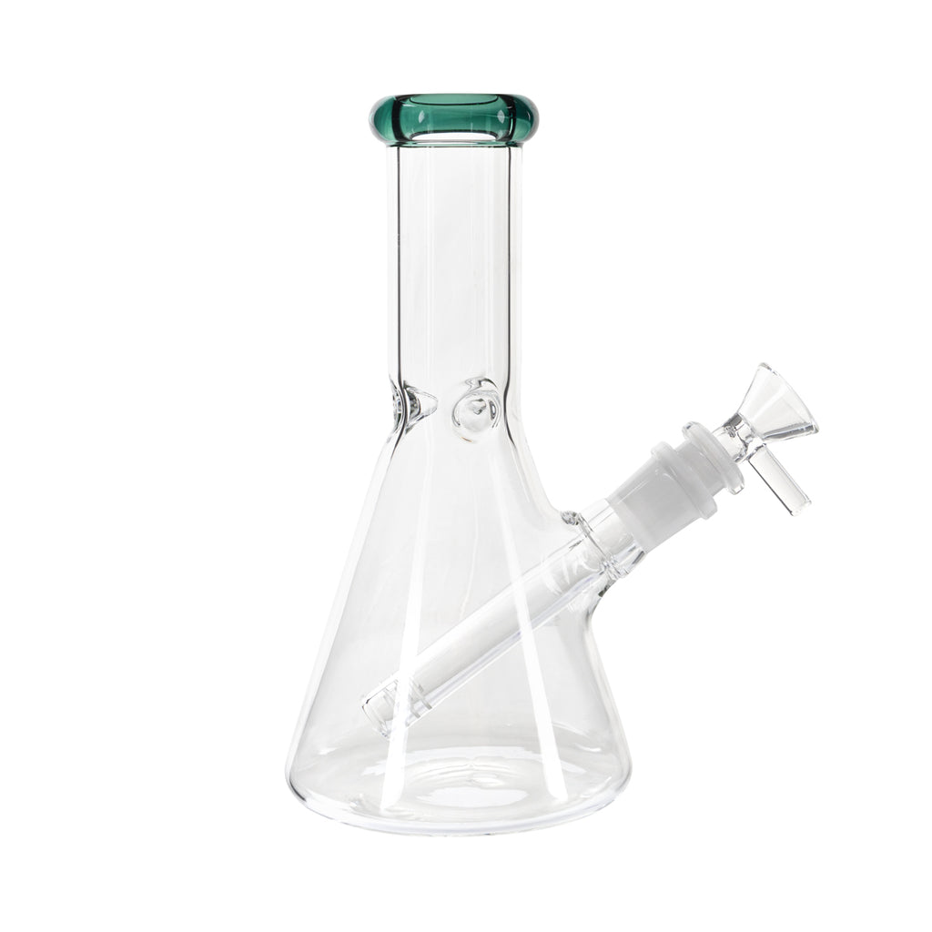 This water bong features a robust beaker base that boosts stability to help prevent tipping and extend its durability. Its 14mm glass bowl accommodates generous amounts of your favorite herb, and the integrated 3-pinch ice catcher cools your draws for a smoother experience. Topped with a vibrant colored lip detail, it adds a splash of style to any setting.